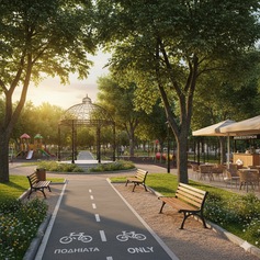 Επίσης μπορεί να υπάρχει πάρκο για τα παιδιά αλλά και για τα σκυλιά και επιπλέον ξεχωριστό μονοπάτι μόνο για τα ποδήλατα